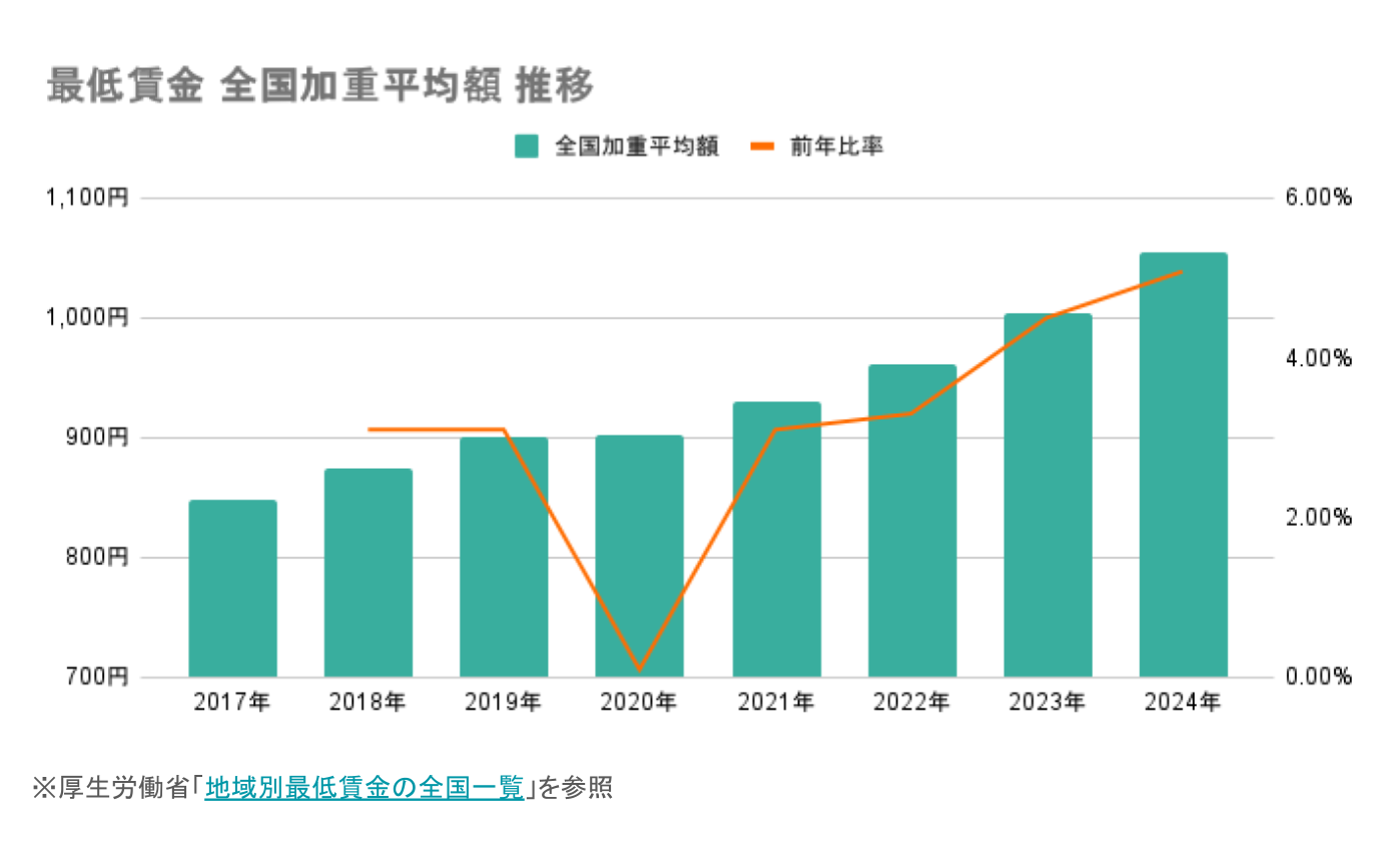 ※最低賃金の改定については厚生労働省「地域別最低賃金の全国一覧」を参照