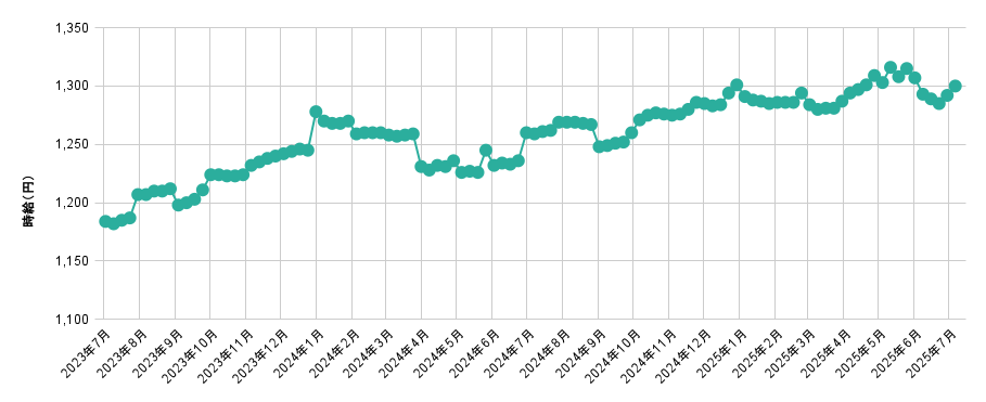 【図1】全国平均時給 直近25か月の推移